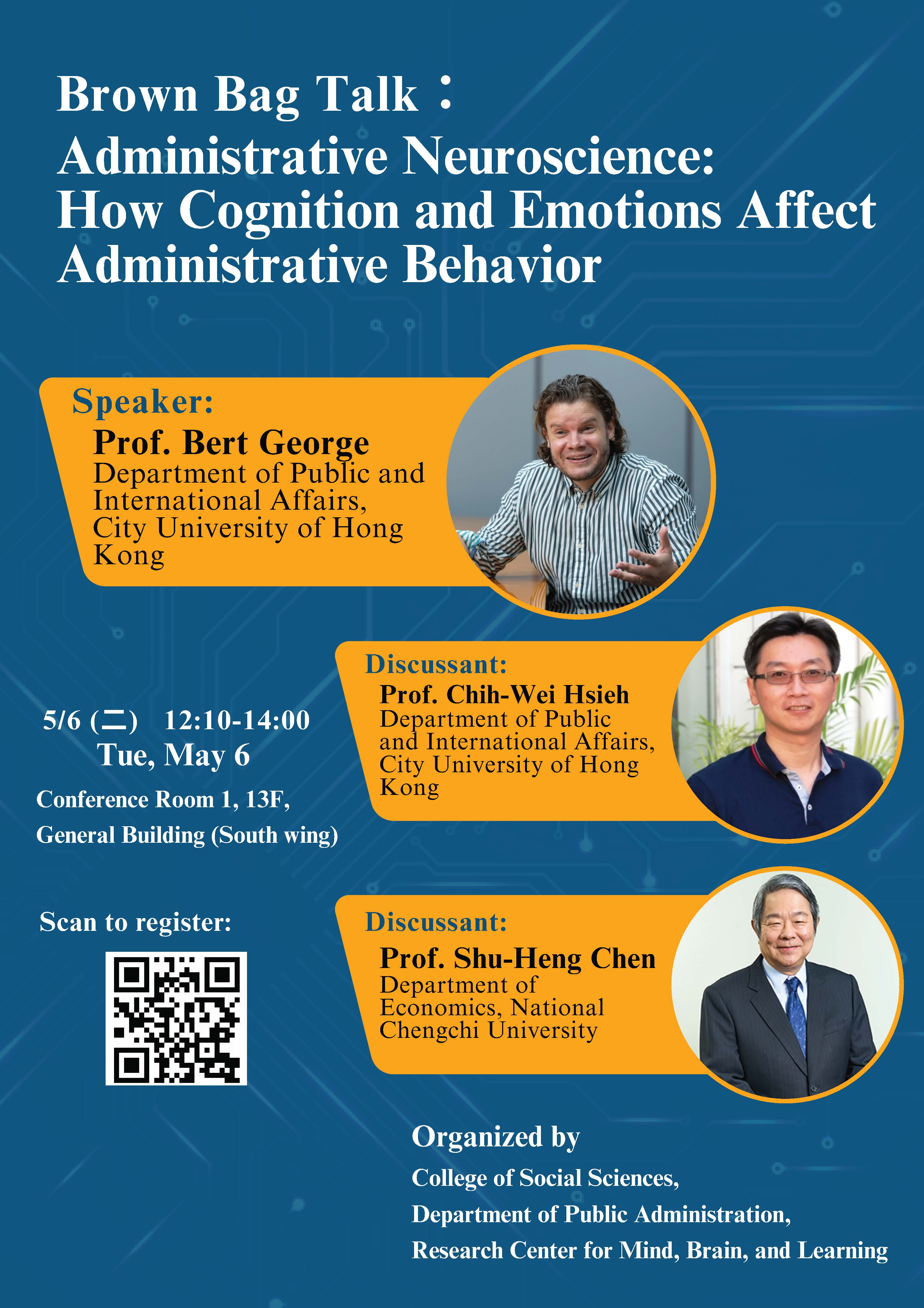合辦單位: 社會科學院◆ 公共行政學系◇心智、大腦與學習研究中心