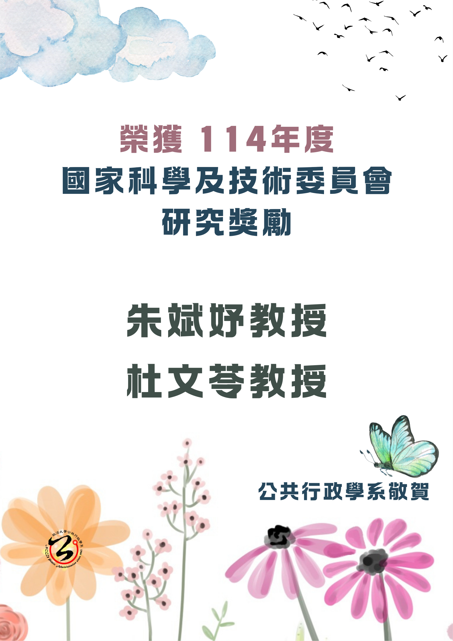 恭喜朱斌妤老師、杜文苓老師榮獲